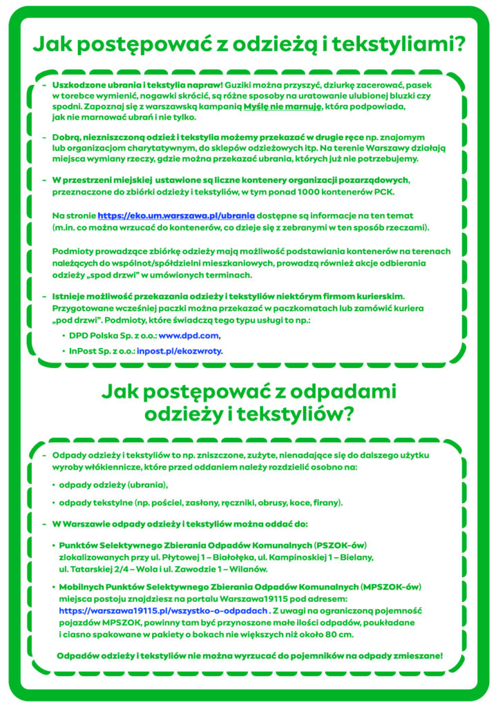 Odpady można oddać Punktach Selektywnego Zbierania Odpadów Komunalnych (PSZOK-ach), a mniejsze odpady w odpowiednio oznakowanych pojazdach – tzw. Mobilnych Punktach Selektywnego Zbierania Odpadów Komunalnych (MPSZOK-ach).