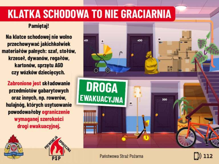 Zalegające w częściach wspólnych przedmioty nie tylko wpływają negatywnie na estetykę nieruchomości obniżając jej prestiż, ale przede wszystkim stanowią zagrożenie zdrowia i życia w przypadku konieczności ewakuacji.
