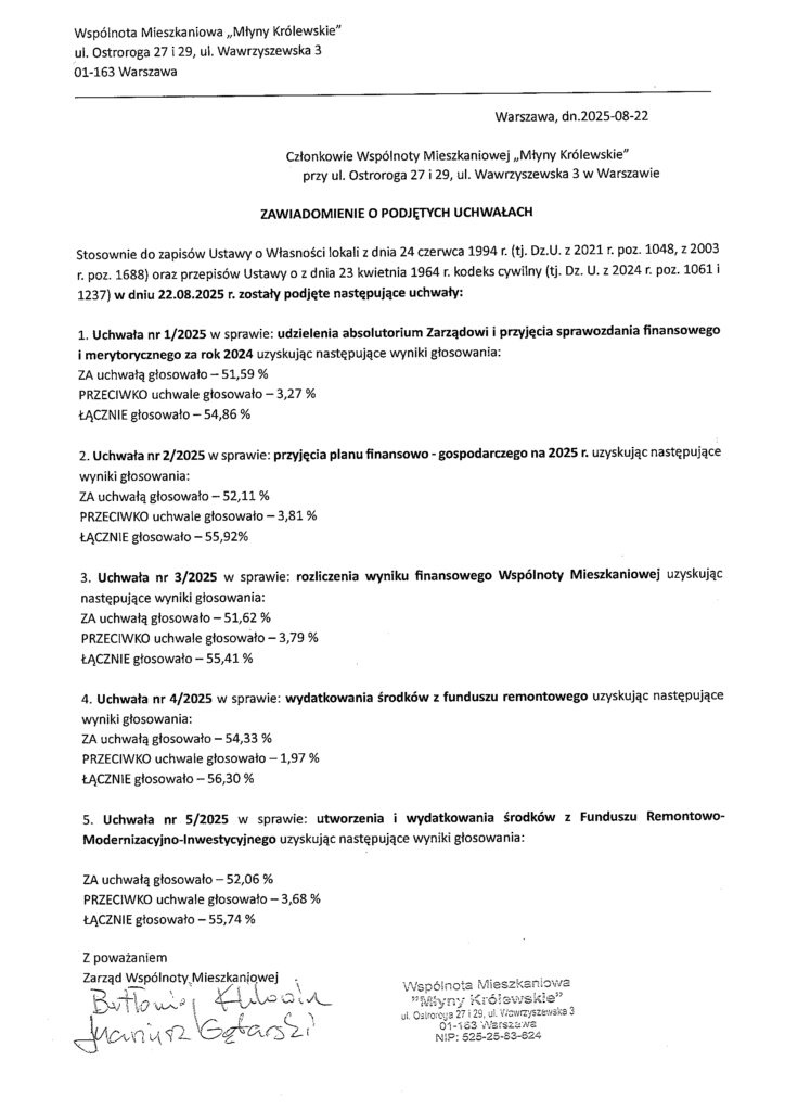 Zwracamy się do Państwa z serdecznym apelem o oddanie głosu w trwającym głosowaniu nad uchwałami naszej wspólnoty mieszkaniowej Młyny Królewskie – duża wspólnota