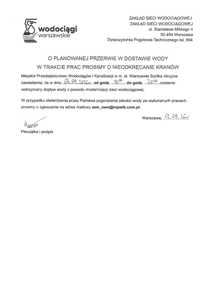 BRAK WODY – 08.09.2025