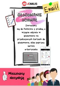 W zakładce UCHWAŁY można oddać swój głos. Wydrukowane karty do głosowania są dostępne w pomieszczeniu ochrony.